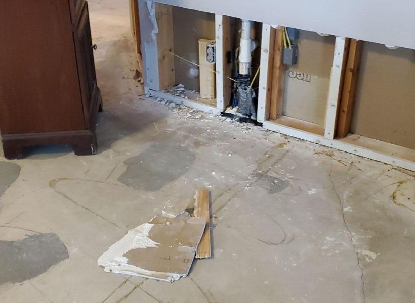 Two bathrooms, two bedrooms with adjacent closets, a kitchen, living room, dining room, entry, hallways, pantry, laundry room, and playroom were all under threat. With vinyl and tile flooring, carpets, kitchen cabinet toe kicks, drywall sections, and insulation at risk, the stakes were high.