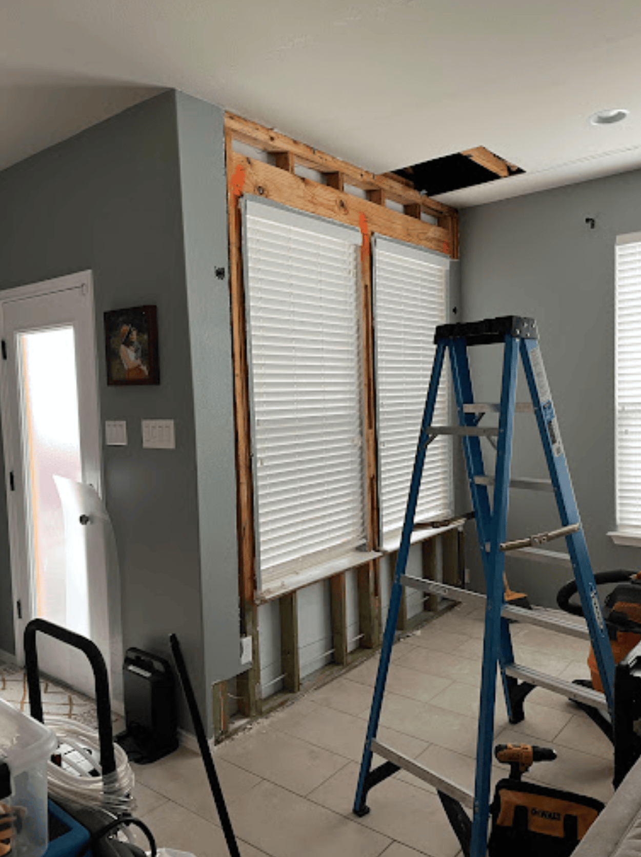 In this customer’s case, the drywall, insulation and baseboard around the two windows had to be removed and disposed of.